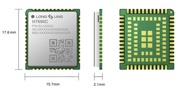 H7690C 采用了主流尺寸和通用封装定义,实现市场上 主流CAT1产品之间的平滑切换,极大方便客户对尺寸紧凑