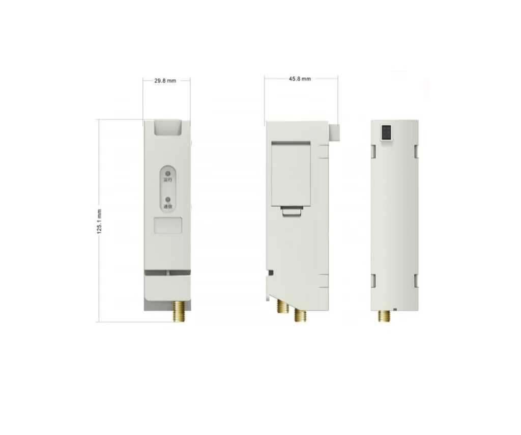 外壳尺寸为125.1*29.8*45.8mm,接口为2X3双排插针,具备4G通讯功能。支持LTE-TDD/LTE-FDD/